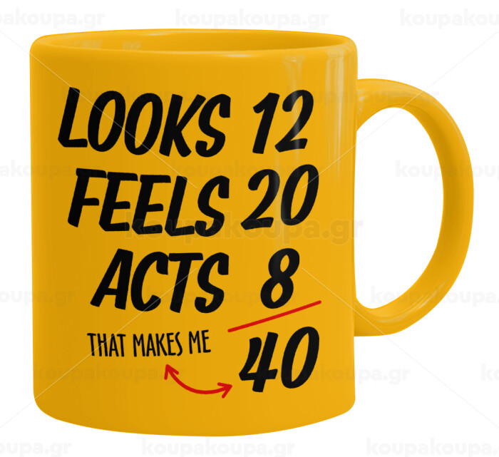 Looks, feels, acts LIKE your AGE, Κούπα, κεραμική κίτρινη, 330ml