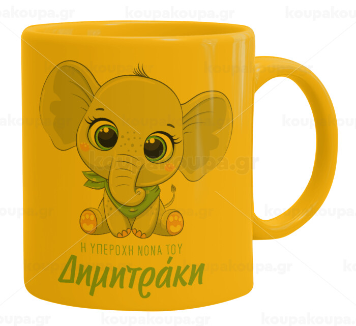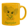 Η νονά μου, ελεφαντάκι γαλάζιο, Κούπα, κεραμική κίτρινη, 330ml