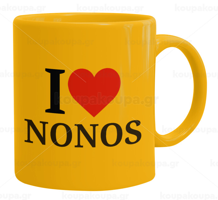 I Love ΝΟΝΟΣ, Κούπα, κεραμική κίτρινη, 330ml