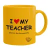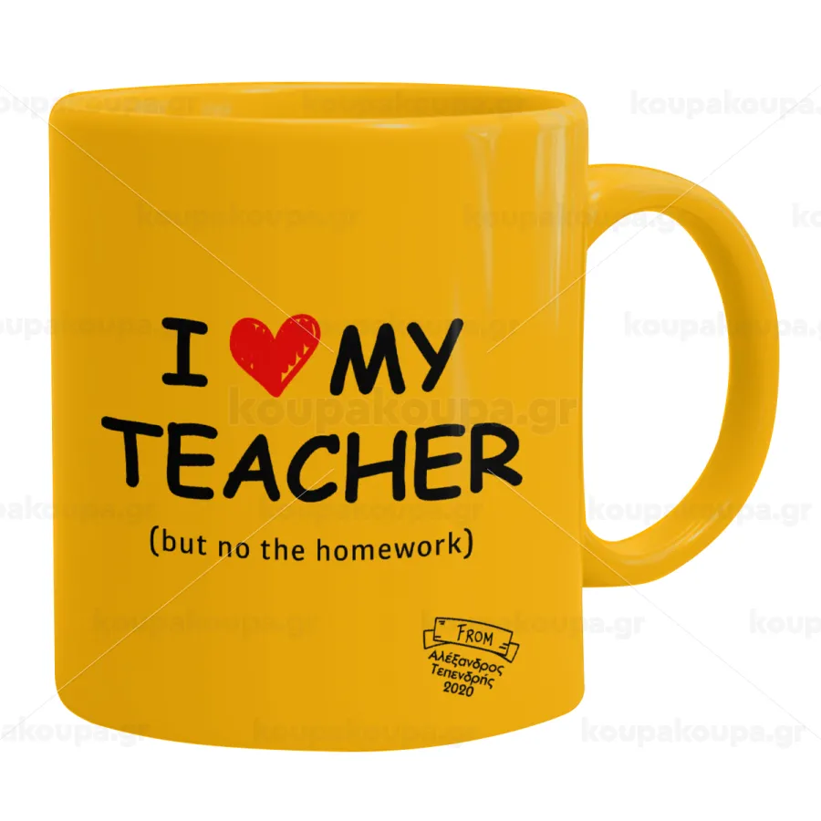 i love my teacher but no the homework, Κούπα, κεραμική κίτρινη, 330ml