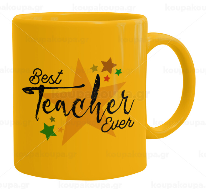 Teacher super star!!!, Κούπα, κεραμική κίτρινη, 330ml