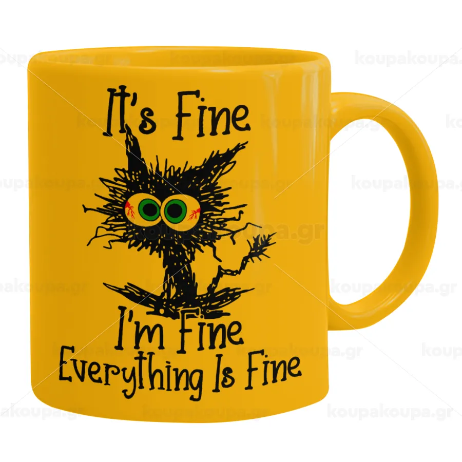 Cat, It's Fine I'm Fine Everything Is Fine, Κούπα, κεραμική κίτρινη, 330ml