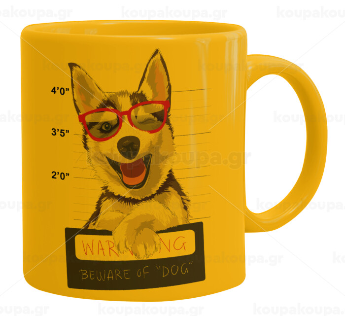 Warning, beware of Dog, Κούπα, κεραμική κίτρινη, 330ml