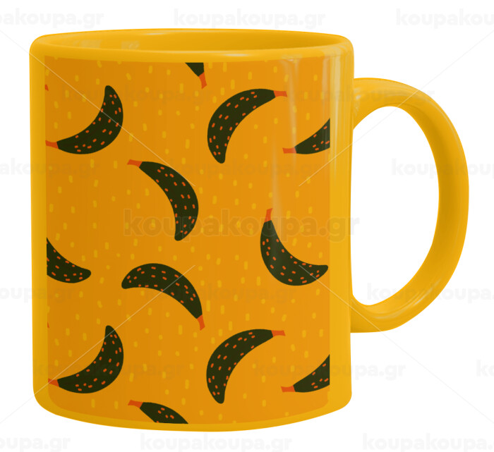 Yellow seamless with blue bananas, Κούπα, κεραμική κίτρινη, 330ml