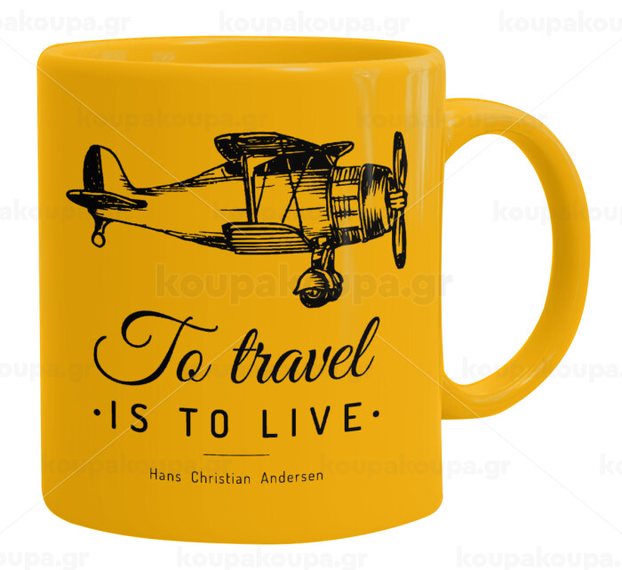 To travel is to live, Κούπα, κεραμική κίτρινη, 330ml