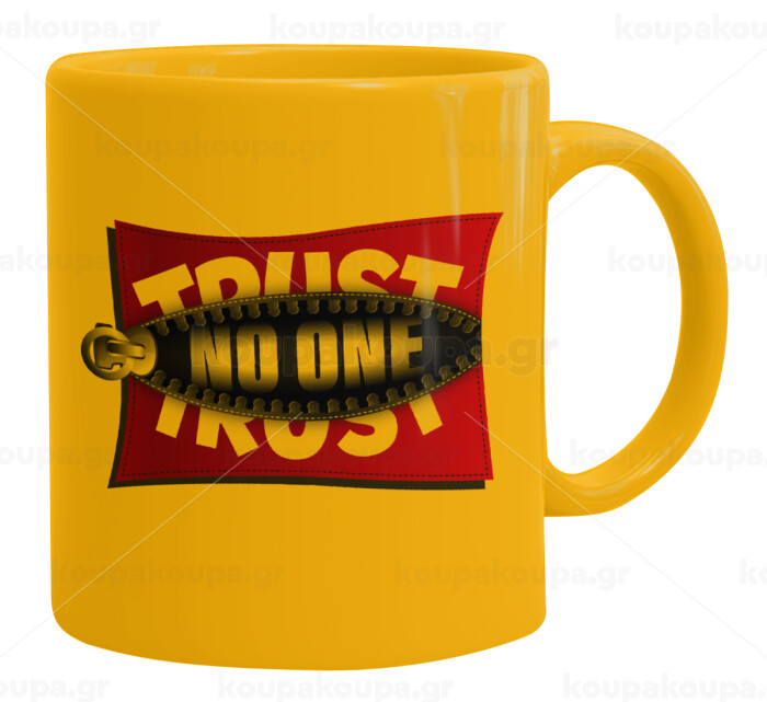Trust no one... (zipper), Κούπα, κεραμική κίτρινη, 330ml