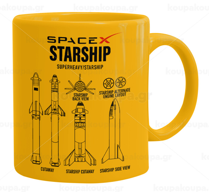 Space X, Κούπα, κεραμική κίτρινη, 330ml