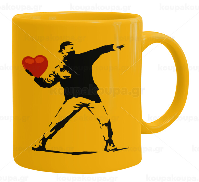 Banksy (The heart thrower), Κούπα, κεραμική κίτρινη, 330ml