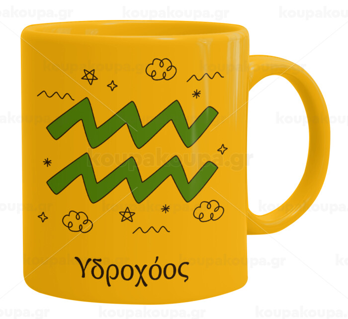 Ζώδια Υδροχόος, Κούπα, κεραμική κίτρινη, 330ml