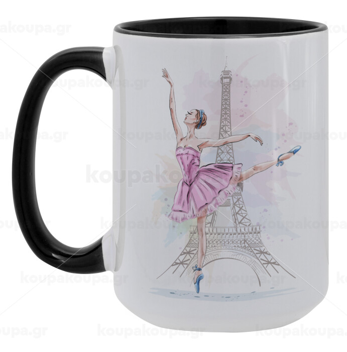 Ballerina in Paris, Κούπα Mega 15oz, κεραμική Μαύρη, 450ml