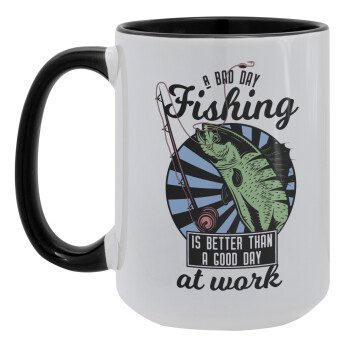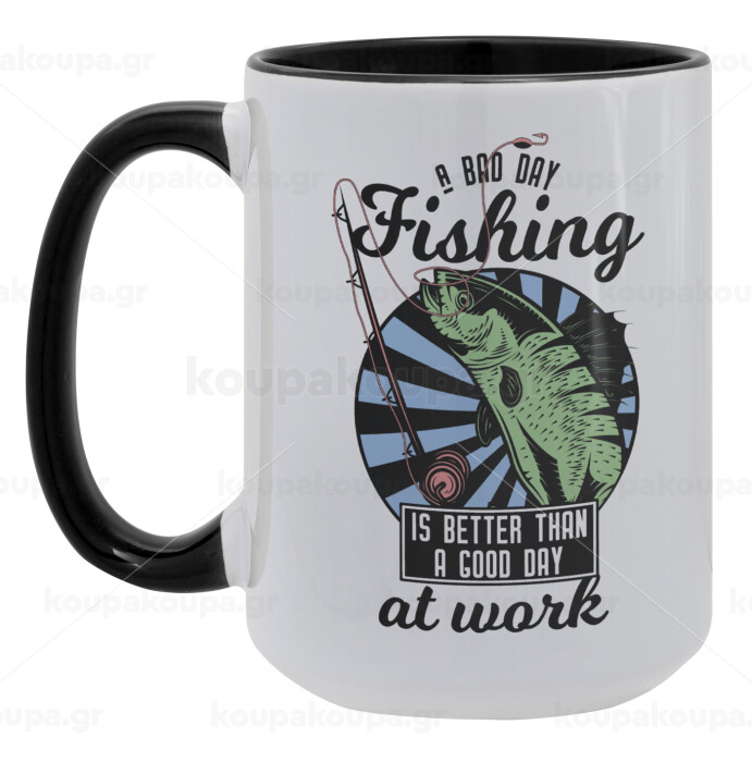 A bad day FISHING is better than a good day at work, Κούπα Mega 15oz, κεραμική Μαύρη, 450ml