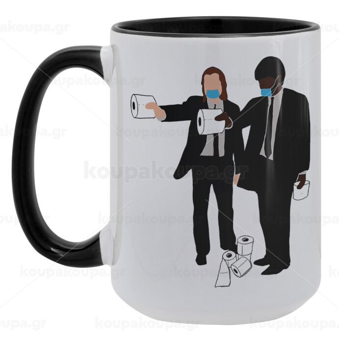 Pulp Fiction 3 meter away, Κούπα Mega 15oz, κεραμική Μαύρη, 450ml