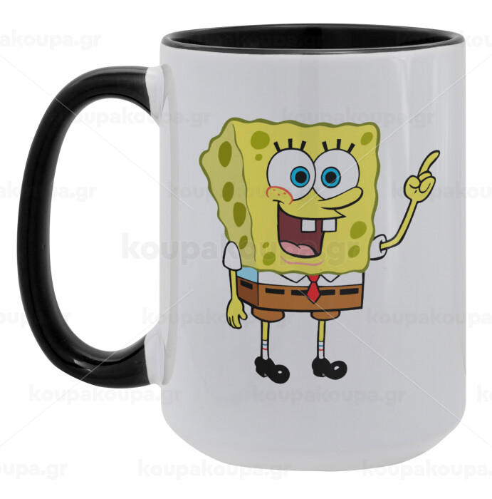 Μπομπ Σφουγγαράκης character, Κούπα Mega 15oz, κεραμική Μαύρη, 450ml