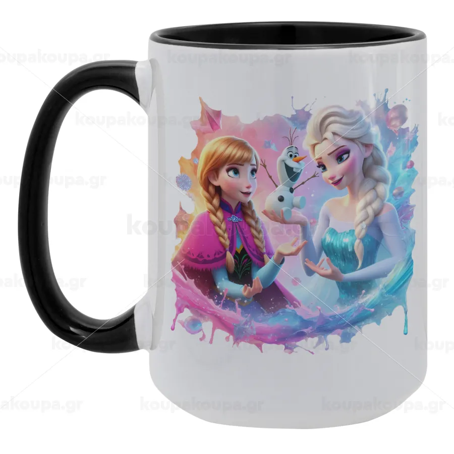 Έλσα & Άννα, Κούπα Mega 15oz, κεραμική Μαύρη, 450ml