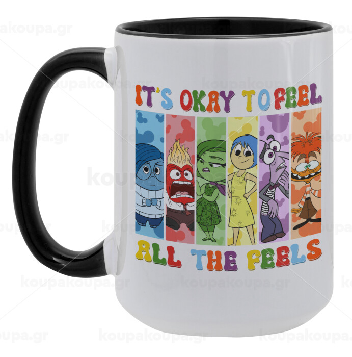 Inside Out It's Okay To Feel All The Feels , Κούπα Mega 15oz, κεραμική Μαύρη, 450ml