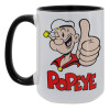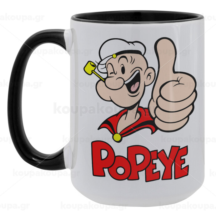 Popeye the sailor man, Κούπα Mega 15oz, κεραμική Μαύρη, 450ml