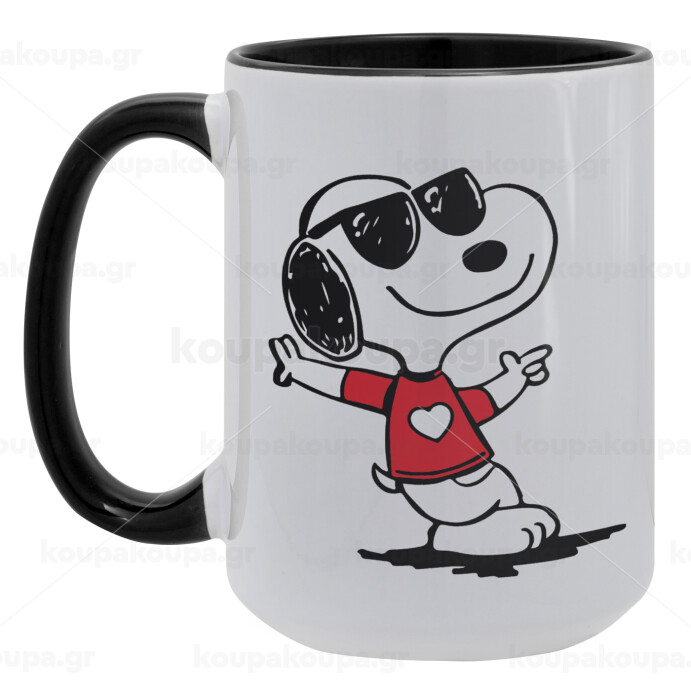 Snoopy καρδούλα, Κούπα Mega 15oz, κεραμική Μαύρη, 450ml