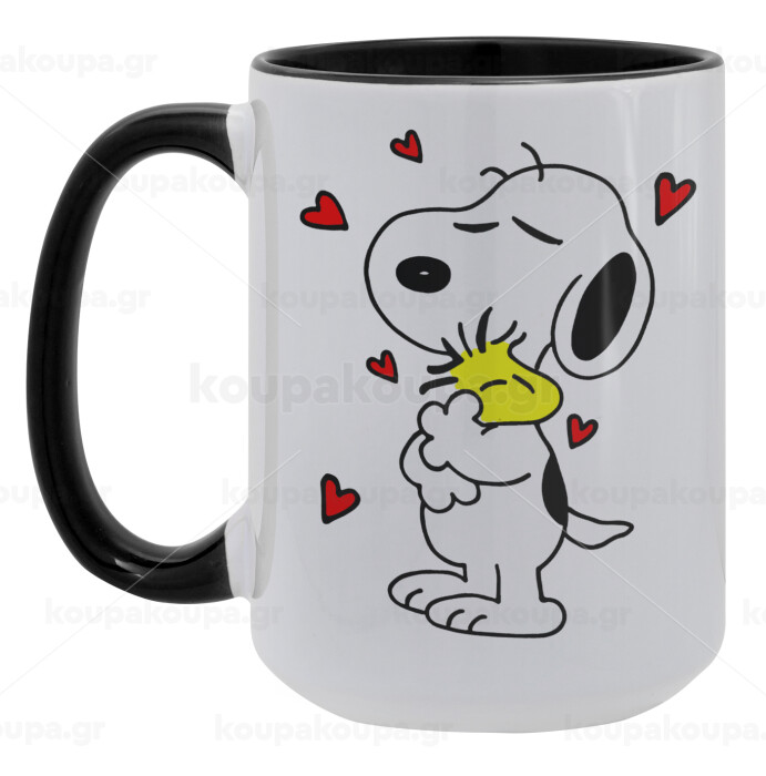Snoopy Love, Κούπα Mega 15oz, κεραμική Μαύρη, 450ml