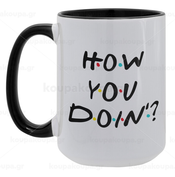 Friends How You Doin'?, Κούπα Mega 15oz, κεραμική Μαύρη, 450ml