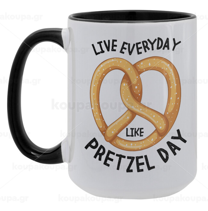 The office, Live every day like pretzel day, Κούπα Mega 15oz, κεραμική Μαύρη, 450ml