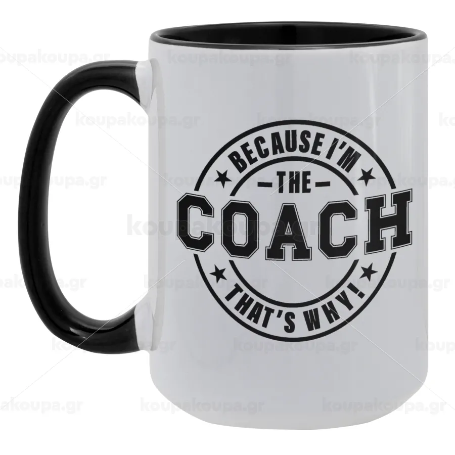 Because i'm the Coach, Κούπα Mega 15oz, κεραμική Μαύρη, 450ml