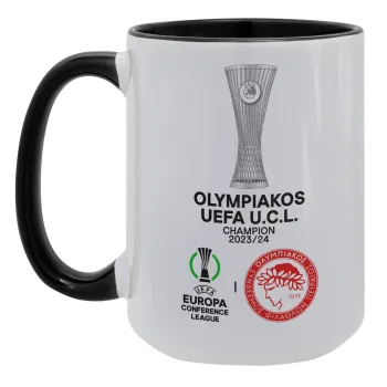 Ολυμπιακός νικητής UEFA Europa Conference League Champion 2023/24, Κούπα Mega 15oz, κεραμική Μαύρη, 450ml