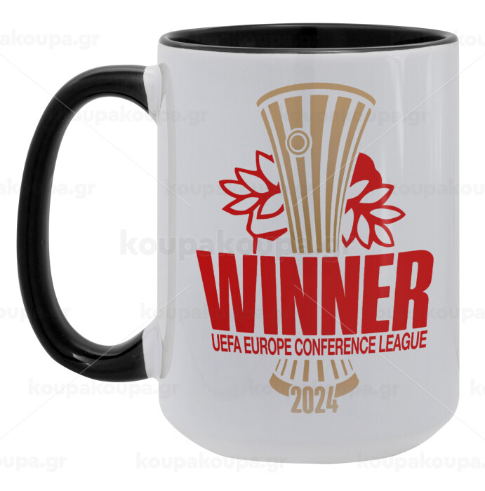 Europa Conference League WINNER, Κούπα Mega 15oz, κεραμική Μαύρη, 450ml