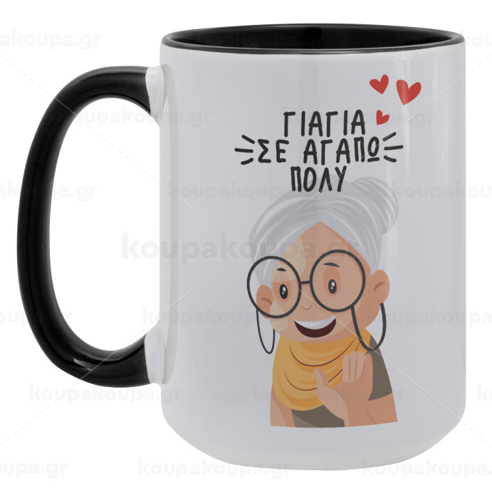 Γιαγιά σε αγαπώ πολύ!, Κούπα Mega 15oz, κεραμική Μαύρη, 450ml