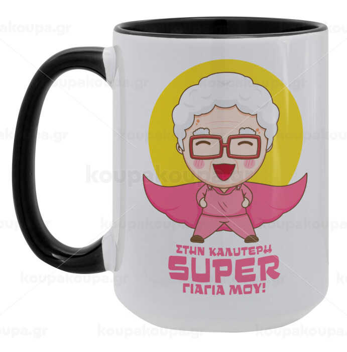 Στην καλύτερη Super γιαγιά μου!, Κούπα Mega 15oz, κεραμική Μαύρη, 450ml