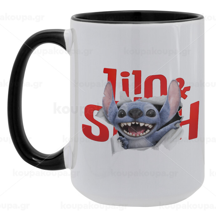 Stitch movie, Κούπα Mega 15oz, κεραμική Μαύρη, 450ml