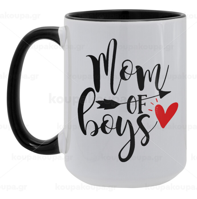 Mom of boys, Κούπα Mega 15oz, κεραμική Μαύρη, 450ml
