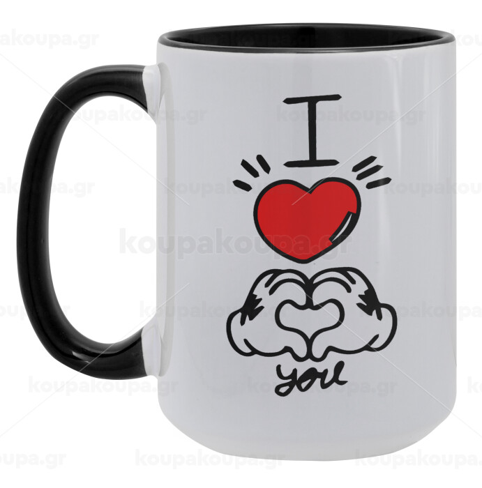 comics hands love, Κούπα Mega 15oz, κεραμική Μαύρη, 450ml