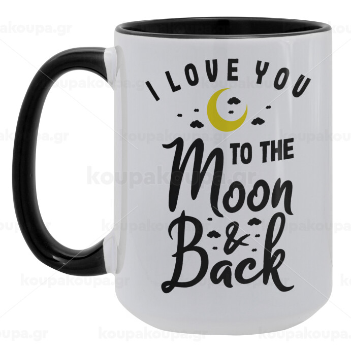 I love you to the moon and back, Κούπα Mega 15oz, κεραμική Μαύρη, 450ml