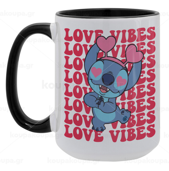 Lilo & Stitch Love vibes, Κούπα Mega 15oz, κεραμική Μαύρη, 450ml