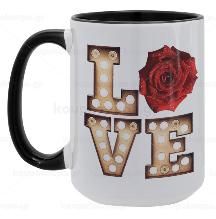 Love lights and roses, Κούπα Mega 15oz, κεραμική Μαύρη, 450ml