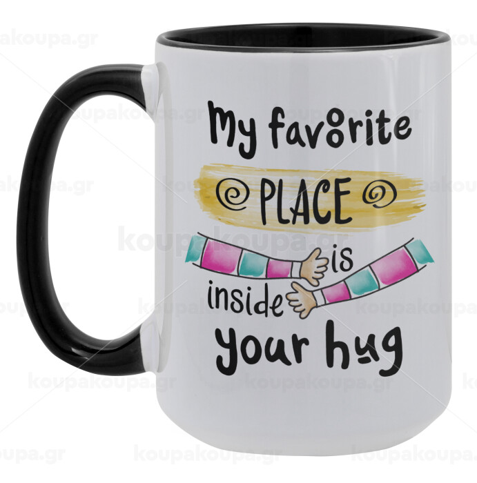 My favorite place is inside your HUG, Κούπα Mega 15oz, κεραμική Μαύρη, 450ml