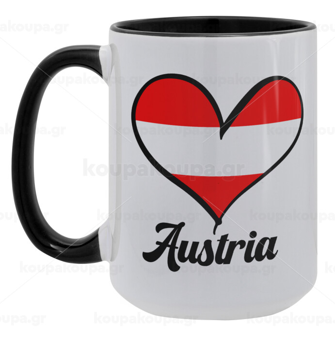 Austria flag, Κούπα Mega 15oz, κεραμική Μαύρη, 450ml