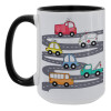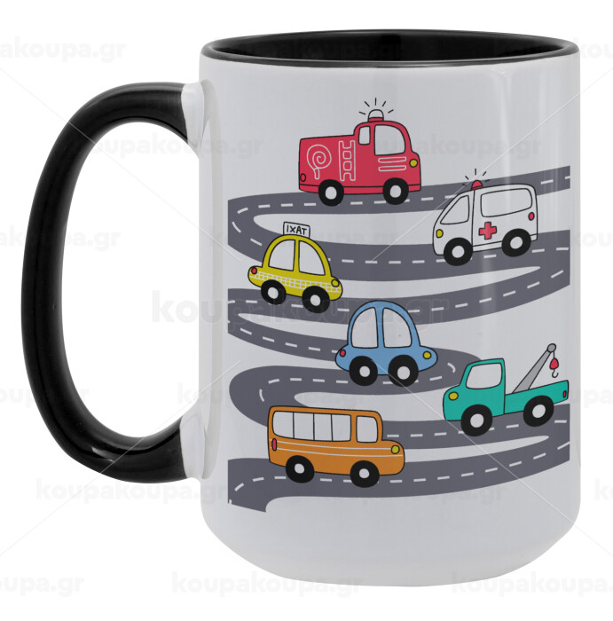 Hand drawn childish set with cars, Κούπα Mega 15oz, κεραμική Μαύρη, 450ml