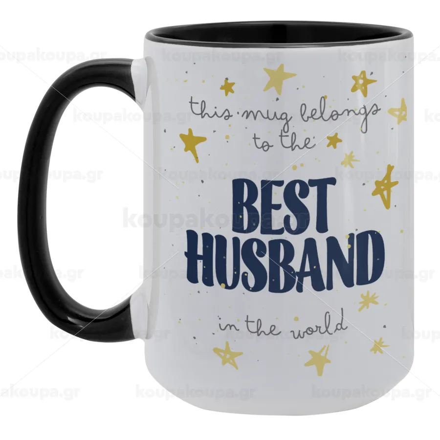 This mug belongs to the BEST HUSBAND in the world!, Κούπα Mega 15oz, κεραμική Μαύρη, 450ml
