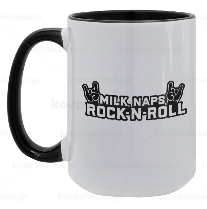 Milk, Naps, Rock N Roll, Κούπα Mega 15oz, κεραμική Μαύρη, 450ml