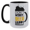 Don't worry BEER Happy, Κούπα Mega 15oz, κεραμική Μαύρη, 450ml