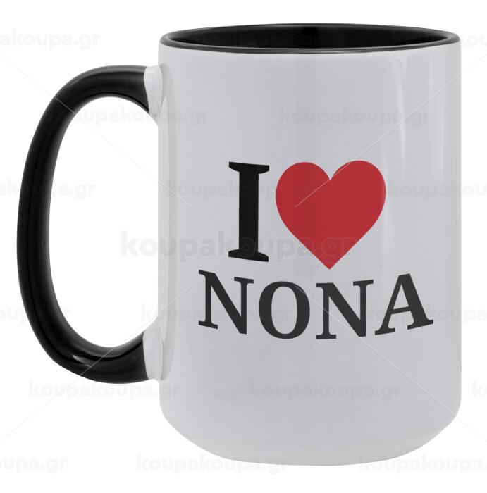 I Love ΝΟΝΑ, Κούπα Mega 15oz, κεραμική Μαύρη, 450ml