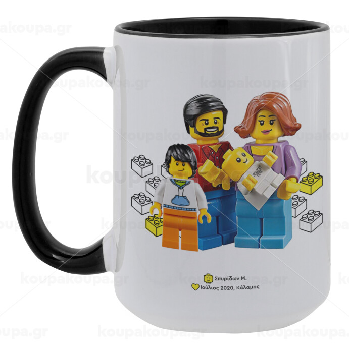 Τύπου Lego family, Κούπα Mega 15oz, κεραμική Μαύρη, 450ml
