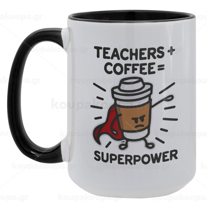 Teacher Coffee Super Power, Κούπα Mega 15oz, κεραμική Μαύρη, 450ml