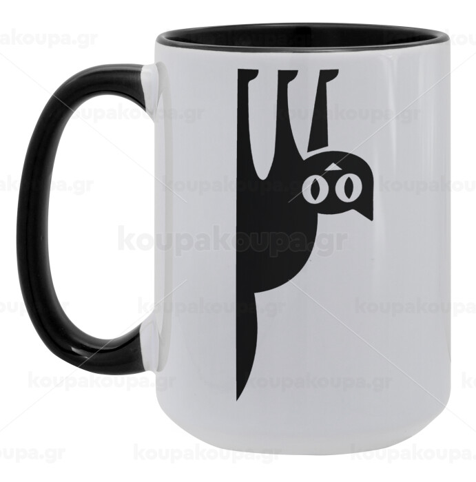 Cat upside down, Κούπα Mega 15oz, κεραμική Μαύρη, 450ml