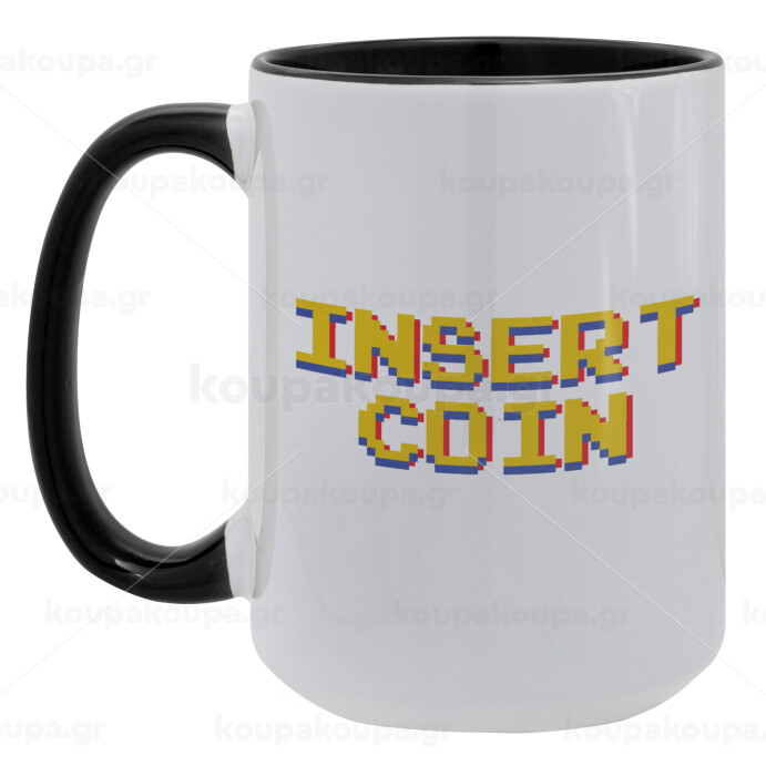 Insert coin!!!, Κούπα Mega 15oz, κεραμική Μαύρη, 450ml
