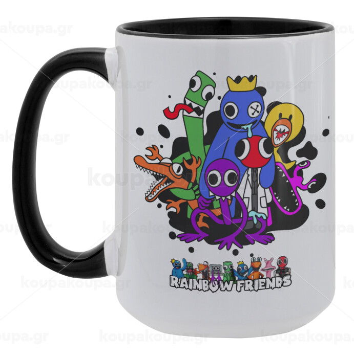 Rainbow friends, Κούπα Mega 15oz, κεραμική Μαύρη, 450ml