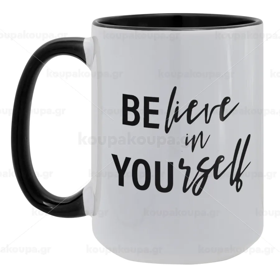 Believe in your self, Κούπα Mega 15oz, κεραμική Μαύρη, 450ml