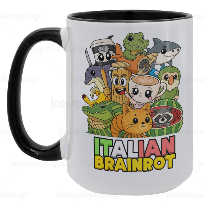 Italian Brainrot friends, Κούπα Mega 15oz, κεραμική Μαύρη, 450ml