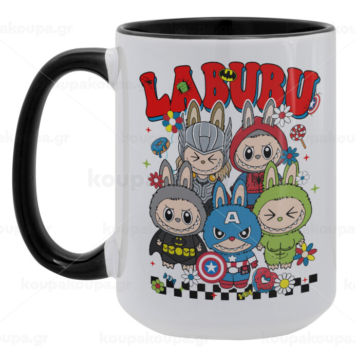 Labubu superheroes, Κούπα Mega 15oz, κεραμική Μαύρη, 450ml
